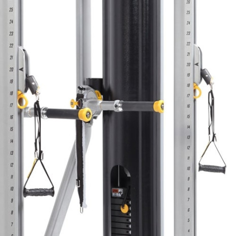 Комплекс HOIST Mi7 отличается современным дизайном, призванным закрыть основные механические элементы и сберечь их от загрязнений. Благодаря широкой открытой конструкции имеется возможность выполнения различных упражнений на скамье, полностью используя возможности комплекса. Продуманная конструкция рукоятей позволяет использовать разные хваты для подтягиваний, давая возможность развивать различные мышцы рук. Упор-подушка может регулироваться для более удобного положения, а запатентованная технология колонн для тяги помогает настраивать их одной рукой, вращая на 360⁰. Имеется возможность тренировки обеих сторон тела одновременно или в независимом режиме, такую возможность обеспечивают колонны с 28 вариантами положений. Весовой стек выполнен по запатентованной системе, дарящей малое трение между плитами и постепенное, практически бесшумное движение. Система передачи нагрузки позволяет использовать амплитуду движения тросов по максимуму, получая 50% сопротивления.