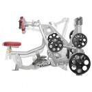 Эта модель оснащена самостоятельно выравнивающимся рычагом, благодаря которому пользователь может тянуть рукоятки вниз в позиции «гребля с упором в грудь», за счет чего становится возможным задействование большого числа мышц центрального, а также нижнего отделов спины.