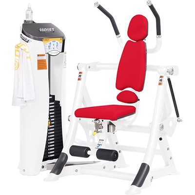 Силовой тренажер RS-1601 от Hoist используют для тренировки мышц пресса. Его конструкция позволяет избежать нежелательной нагрузки и растяжения мышц спины и бедра. Усиление воздействия на мускулатуру пресса происходит в результате подъема ног.