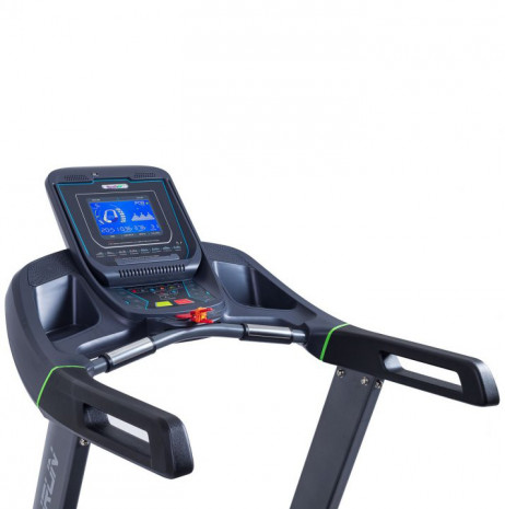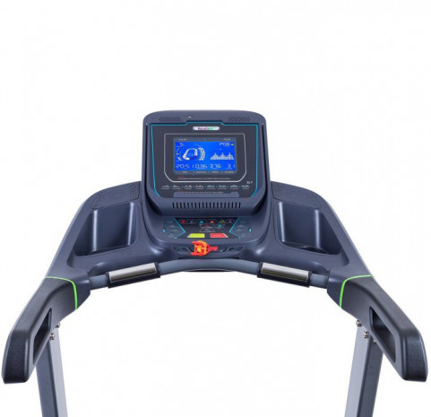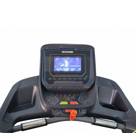 Беговая дорожка оснащена современной консолью с 8-дюймовым LED дисплеем с голубой подсветкой. На дисплее в постоянном режиме отображаются все необходимые тренировочные параметры, в том числе дистанция, время, скорость, угол наклона бегового полотна, пульс, расход калорий и программный профиль.