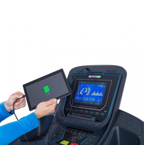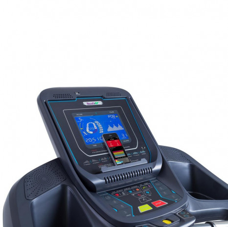 Эта модель беговой дорожки оснащена современной консолью, которая представляет собой настоящий тренировочный компьютер. На LED дисплее консоли размером 6,8 дюймов отображаются все необходимые тренировочные параметры, с помощь которых пользователь может отслеживать процесс тренировки. Встроенный программный пакет позволяет решать самые различные тренировочные задачи. В мультимедийную составляющую входят встроенные динамики и USB-разъем для подключения сторонних носителей с аудиофайлами.