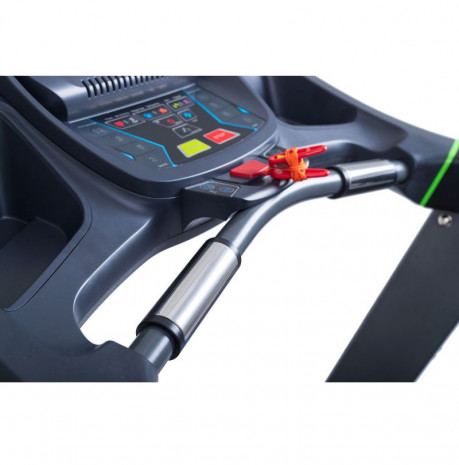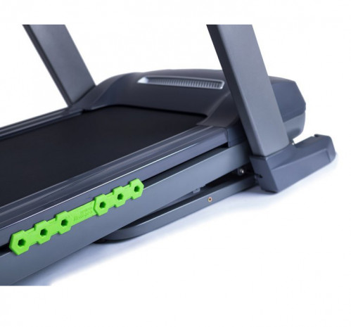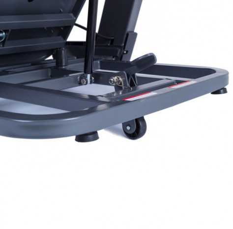 Для удобного хранения беговой дорожки она имеет складную конструкцию. Гидравлическая система обеспечивает облегчение процесса складывания и раскладывания дорожки с медленным опусканием бегового полотна.