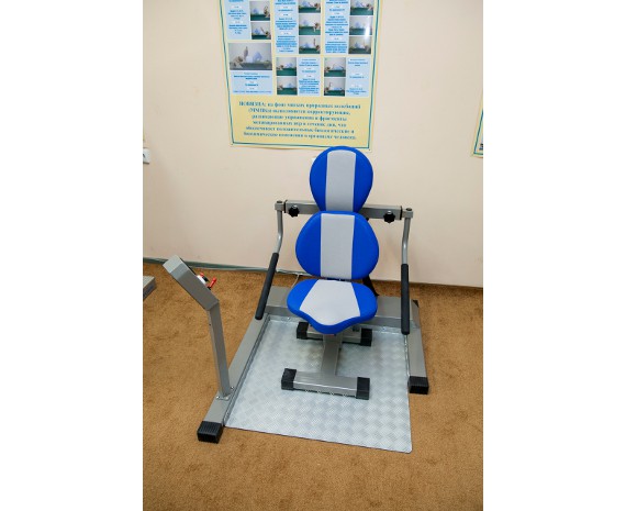Для людей, передвигающихся самостоятельно, имеется удобное приставное сиденье. Немаловажную роль играют два варианта высоты - сиденье с фиксированной высотой и возможность регулировки высоты. Высота сиденья настраивается предельно мягко, чтобы любой человек смог определить для себя наиболее эффективное и одновременно безопасное положение для занятия.