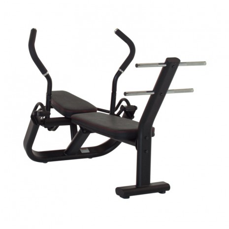Скамья для пресса создана на базе надежной стальной рамы, выполненной из мощного профиля овального сечения, который изготовлен из стали 12-го калибра.