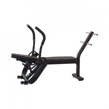 За счет встроенных в опоры стальных подшипников обеспечивается плавность регулировок скамьи. Встроенный держатель для дополнительных весов, расположенный на нижней панели, позволяет увеличивать нагрузку для большей эффективности упражнений. Тщательно проработанная конструкция скамьи с надежной поддержкой ног обеспечивает полную безопасность тренировок, исключая риск получения спортивных травм в виде растяжения связок. Скамья позволяет прорабатывать различные участки пресса, что достигается просто изменением положения ног.