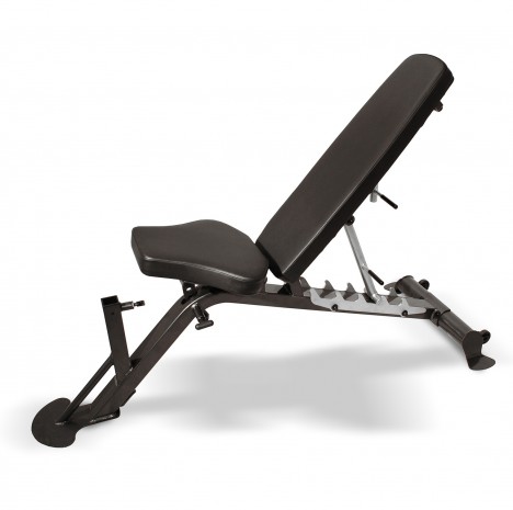 Скамья оснащена транспортировочными колесиками для удобства перемещения по тренажерному залу.