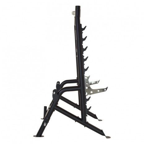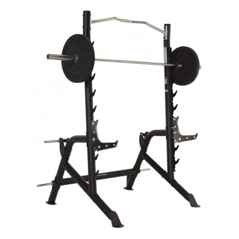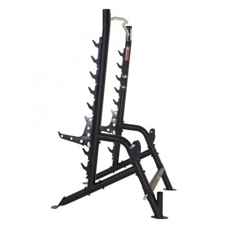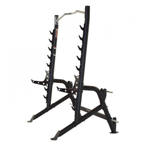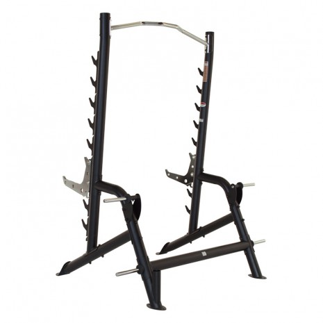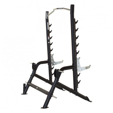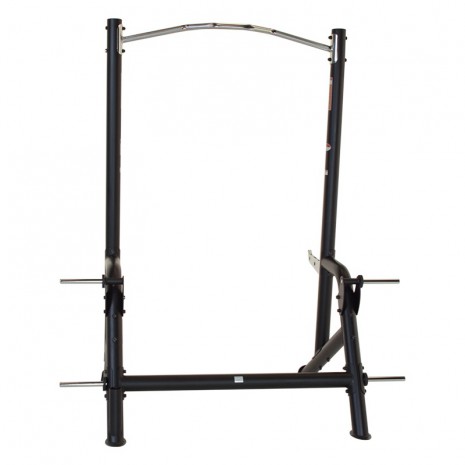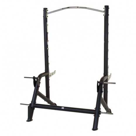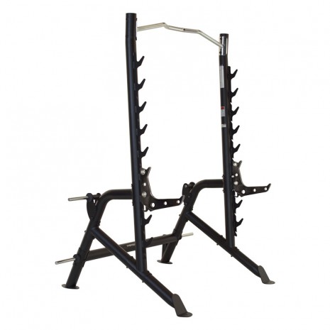 Надежная стальная конструкция, выполненная из трубного профиля круглого сечения, рассчитана на длительный срок эксплуатации. Прочное порошковое покрытие рамы выполнено методом электростатического напыления, что гарантирует полную защиту от коррозии и механических повреждений. Прочные держатели для штанги, выполненные из закаленной стали, расположены в 5-ти уровнях, что позволяет пользователю выбирать стартовое и конечное положение штанги. В конструкции рамы предусмотрены фиксирующие опоры для штанги, чтобы пользователь не ронял штангу на пол.