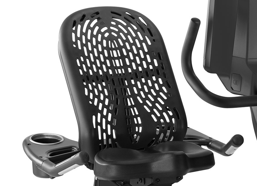 Для максимального уровня комфорта пользователя тренажер оборудован удобным анатомическим сиденьем. Высокая контурная спинка повторяет естественные изгибы спины, обеспечивая непревзойденную поддержку позвоночника и поясничного отдела. Перфорированная спинка обеспечивает отличную вентиляцию, так как не задерживает циркуляцию воздуха.