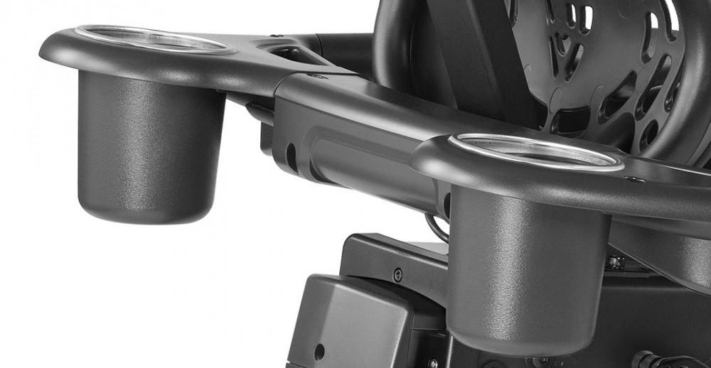 Многофункциональные рукоятки. Рукоятки руля имеют эргономичную форму, а для максимального комфорта в гоночном положении предусмотрена интегрированная локтевая поддержка. В рукоятки, расположенные по обеим сторонам сиденья, встроены кнопки регулировки уровня сопротивления.