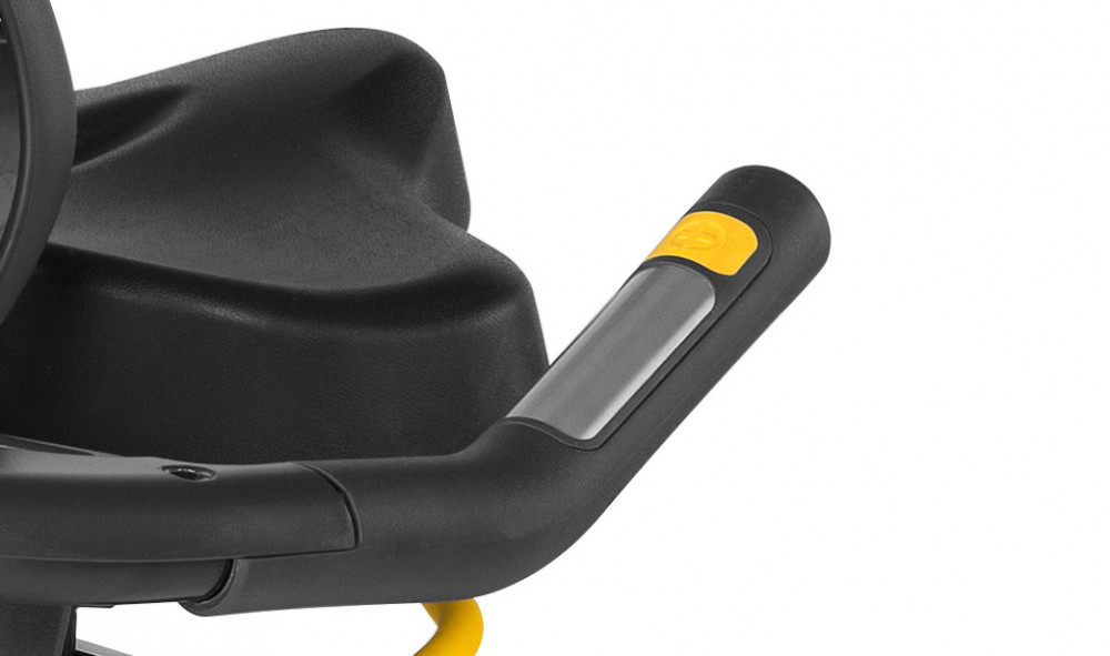 В рукоятки, расположенные по обеим сторонам сиденья, встроены сенсорные датчики пульса и кнопки для быстрой регулировки уровня сопротивления, что позволяет менять прямо на ходу интенсивность тренировки.