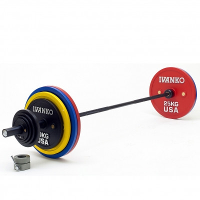 Набор олимпийских дисков для пауэрлифтинга IVANKO Powerlifting Set (Painted) w/OBX-20KG CBSP-142KG (с грифом и замками)