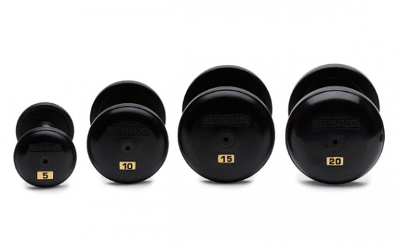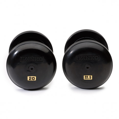 Головки гантелей выполнены в виде стальных пластин с резиновым покрытием Ivanko RUB.