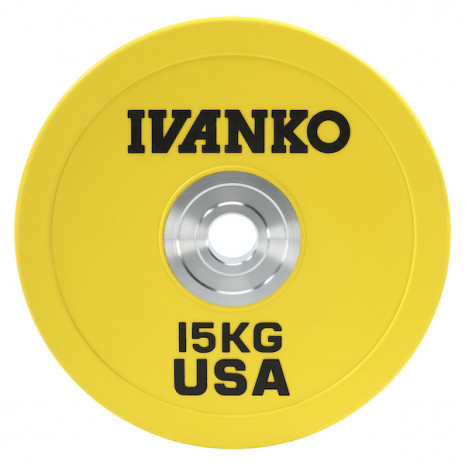 Обрезиненный олимпийский диск IVANKO Rubber Encased Olympic Plate 35 Lbs OBPX-35Y (35 фунтов, желтый)
