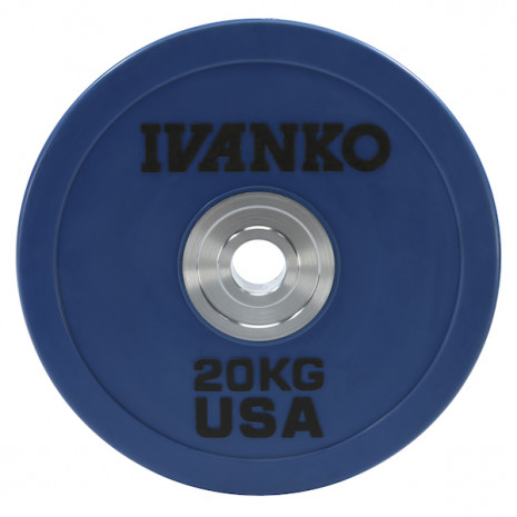 Обрезиненный олимпийский диск IVANKO Rubber Encased Olympic Plate 45 Lbs OBPX-45B (45 фунтов, синий)