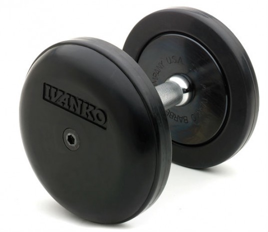 Головки гантелей выполнены в виде стальных пластин с резиновым покрытием Ivanko RUB.