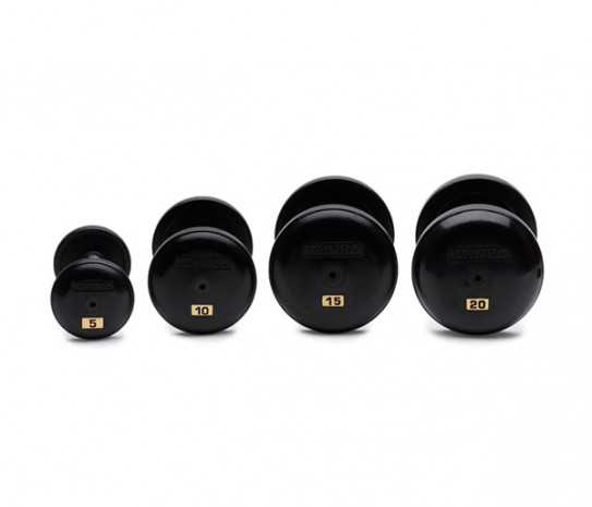 Головки гантелей выполнены в виде стальных пластин с резиновым покрытием Ivanko RUB.