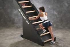 На лестнице человек располагается под углом 40°, таким образом, снимается нагрузка с нижней части спины и коленей. Этот тренажер отличается неограниченной конечной скоростью, что позволяет проводить как аэробные, так и анаэробные тренировки. Лестница имеет автоматический регулятор скорости и функцию автоматической остановки. Постоянный шаг 30,5 см дает полную амплитуду движения. С этим тренажером можно повышать нагрузку на большей скорости. Оба тренажера не дают большую нагрузку на суставы. Он позволяет тренировать верхнюю и нижнюю части тела. Лестница Exclusive фирмы Jacobs Ladder - это самоходный тренажер, не требующий подключения к электросети, поэтому более долговечен и надежен.
