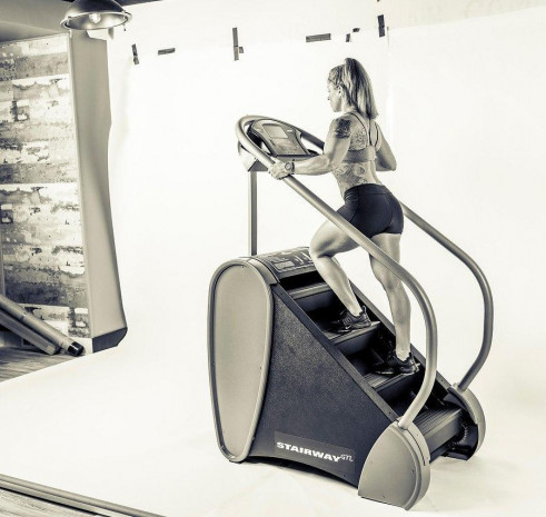 Stairway – это кардиотренажер, имитирующий подъем по лестнице, разработанный специально для коммерческих залов. Уникальная конструкция состоит из вращающейся лестницы, скорость которой регулируется натяжением ремня (также как у Jacobs Ladder). Чем выше Вы поднимаетесь, тем быстрее двигаются ступени, поэтому Вы сами контролируете интенсивность занятия. Самоходный тренажер не требует подключения к электросети.