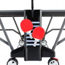 Наличие защитных уголков с двойными поворотными роликами в количестве 4- единиц и двух расположенных по диагонали тормозов, в комплекте идет сетка, мячи и ракетки приобретаются по отдельности.