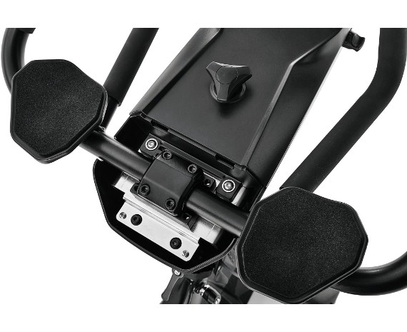 Электромагнитная система сопротивления предоставляет возможность электронной настройки уровня нагрузки. Такая современная технология гарантирует минимальный шаг регулировки. Тяжелый маховик предназначен для плавного вращения педалей. При этом велоэргометр Racer S полностью исключает излишнюю нагрузку на суставы занимающегося человека. И новичков и профессиональных спортсменов приятно удивит большой диапазон создаваемых нагрузок.