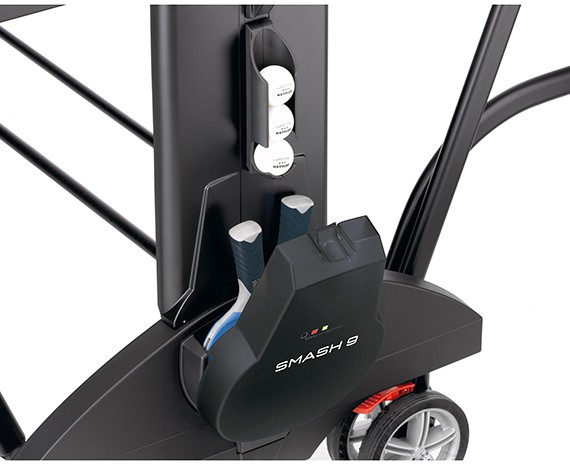 Предусмотрены емкости для мячей и держатели для ракеток.