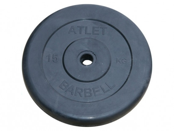 Черный обрезиненный диск BARBELL Atlet MB-AtletB51-15 (15 кг, d 51 мм)