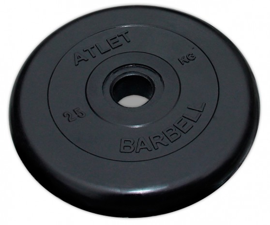 Черный обрезиненный диск BARBELL Atlet MB-AtletB51-25 (25 кг, d 51 мм)