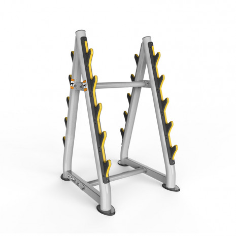 Двусторонняя стойка KFHBRY серии Twin компании Kraft Fitness предназначена для хранения штанг разного вида. Ее конструкция позволяет надежно фиксировать стандартные штанги, облегченные и штанги с изогнутым грифом.