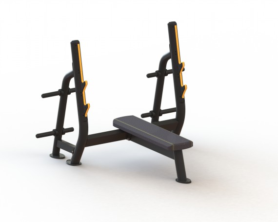 Олимпийская горизонтальная скамья KFOFBY серии Twin разработана для выполнения жима лежа. Использование этого тренажера позволяет качественно проработать мускулатуру верхней части тела, рук – грудные мышцы, бицепсы, трицепсы, предплечья.