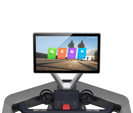 Беговая платформа. Двухступенчатая система амортизации, комплект которой включает 8 газовых амортизаторов на демпфирующих опорах, обеспечивает максимальную безопасность тренировок и полный их комфорт. Беговое полотно от немецкого производителя Siegling имеющее противоскользящее покрытие, за счет чего дорожка работает максимально тихо и с низкими энергозатратами.
