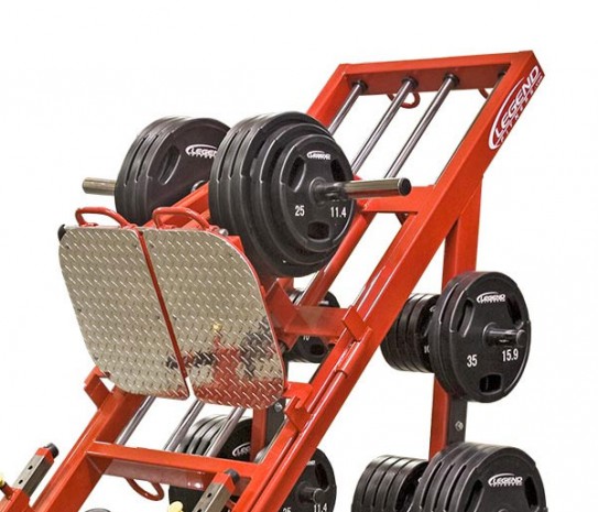 Силовой тренажер 3308 бренда Legend Fitness из линейки нагружаемых дисками силовых тренажеров обеспечивает эффективную проработку мышц ног с помощью упражнения «независимый жим ногами».