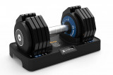 Каждая гантель имеет нескользящее покрытие на ручке и удобный индикатор веса, что обеспечивает безопасность и комфорт во время тренировок. Подставка в комплекте с гантелью позволяет компактно хранить оборудование, а неиспользованные весовые диски всегда остаются в подставке и не "блуждают" по залу или дому.
