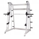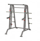 Машина Смита – тренажер, позволяющий выполнять разнообразные силовые упражнения со штангой: жимы, приседы и тяги. Вместе с тем, его можно использовать в качестве стойки для хранения спортивного инвентаря (грифов, штанг). Заниматься на Машине Смита не только эффективно, но и безопасно, поскольку тренировка осуществляется без страхующего партнера благодаря возможности блокирования отягощения.