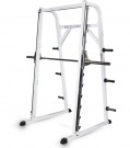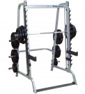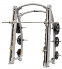 Машина Смита – тренажер, позволяющий выполнять разнообразные силовые упражнения со штангой: жимы, приседы и тяги. Вместе с тем, его можно использовать в качестве стойки для хранения спортивного инвентаря (грифов, штанг). Заниматься на Машине Смита не только эффективно, но и безопасно, поскольку тренировка осуществляется без страхующего партнера благодаря возможности блокирования отягощения.