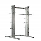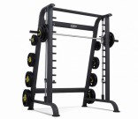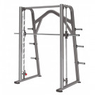 Машина Смита – тренажер, позволяющий выполнять разнообразные силовые упражнения со штангой: жимы, приседы и тяги. Вместе с тем, его можно использовать в качестве стойки для хранения спортивного инвентаря (грифов, штанг). Заниматься на Машине Смита не только эффективно, но и безопасно, поскольку тренировка осуществляется без страхующего партнера благодаря возможности блокирования отягощения.