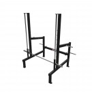 Механизм сочленения каретки с направляющими работает на 8-ми подшипниках, которые исключают любой перекос и одновременно обеспечивают мягкое скольжение. Гриф оснащен страховочными крюками-зацепами, которые служат дополнительным элементом безопасности тренажера. Штыри для дисков, которые имеются в составе тренажера, предоставляют дополнительный комфорт во время тренировки.