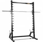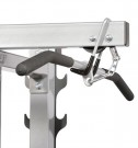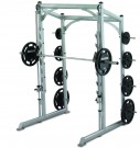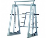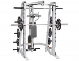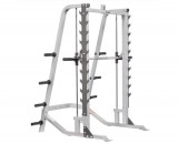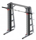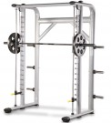 Механизм сочленения каретки с направляющими работает на 8-ми подшипниках, которые исключают любой перекос и одновременно обеспечивают мягкое скольжение. Гриф оснащен страховочными крюками-зацепами, которые служат дополнительным элементом безопасности тренажера. Штыри для дисков, которые имеются в составе тренажера, предоставляют дополнительный комфорт во время тренировки.