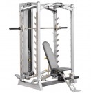 По своей универсальности машина Смита является очень привлекательным тренажером. Если приставить к ней регулируемую скамейку, то пользователь сможет выполнять различные жимы на мышцы груди, а также верхнего плечевого пояса. Другими словами, с помощью данного тренажерного оборудования Вы сможете делать практически любые движения, которые выполняются по вертикальной траектории, в том числе: