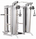 Механизм сочленения каретки с направляющими работает на 8-ми подшипниках, которые исключают любой перекос и одновременно обеспечивают мягкое скольжение. Гриф оснащен страховочными крюками-зацепами, которые служат дополнительным элементом безопасности тренажера. Штыри для дисков, которые имеются в составе тренажера, предоставляют дополнительный комфорт во время тренировки.