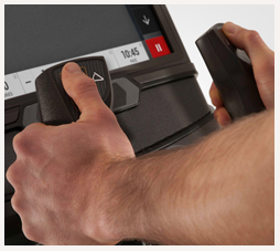 Эргономичные мультипозиционные рукоятки позволяют выбирать удобный хват. В рукоятки встроены клавиши регулировки нагрузки и угла наклона, а также сенсорные датчики пульса.