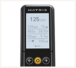 Тренажер оснащен LCD консолью питание которой обеспечивается от генератора. Интуитивно понятная консоль легко читается и отличается отзывчивостью на любое движение пользователя. Консоль позволяет отслеживать все главные параметры тренировки, в том числе обороты в минуту, пульс, Ватты и другие важные показатели. Совместимость с внешними устройствами обеспечивают Bluetooth и ANT +.