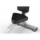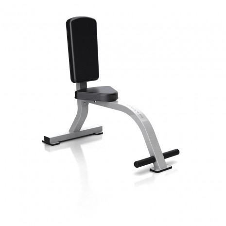 Сиденье анатомической формы с высокой спинкой, расположенной под углом 85 градусов, обеспечивает удобную посадку и поддержку спины. Конструкция скамьи повышает комфорт и устойчивость при выполнении упражнений над головой.
