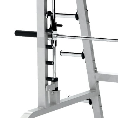 Машина Смита G1-FW161 - тренажер, имеющий шесть держателей для дисков. Стартовая минимальная нагрузка позволяет идеальным образом работать с тренажером начинающим пользователям. В целях безопасности нижнее положение перекладины составляет 65 см.