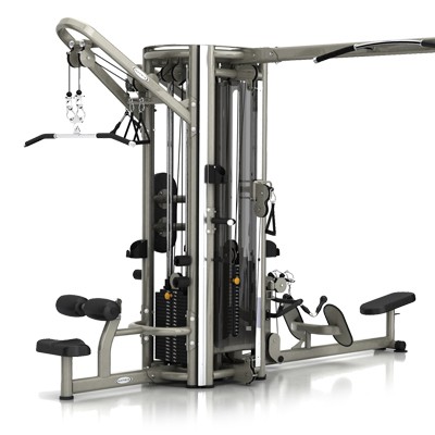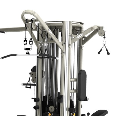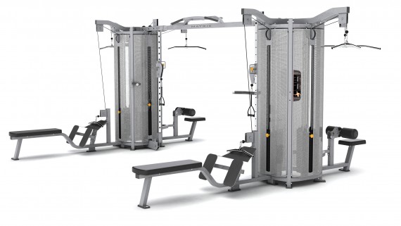 8-ми позиционная мультистанция G1-MS80 от Matrix – это блочный кроссовер, имеющий несколько рабочих станций – грублю сидя (два рабочих места), трицепс стоя (два рабочих места), верхнюю тягу (два рабочих места) и две регулируемые по высоте тяги (махи ногами). Каждый стек весит 91 кг. Тренажер имеет 18 уровней регулировки высоты тяг и турник с прямым и параллельным хватом.