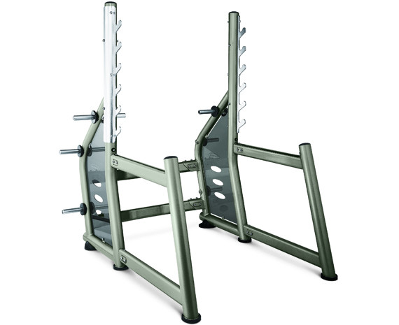Тренажер представляет собой профессиональную раму для приседов. Высота ее страховочной перегородки составляет 69 см. Тренажер оснащен встроенными подставками для дисков, а его устойчивость гарантируется большим весом конструкции.