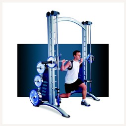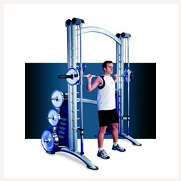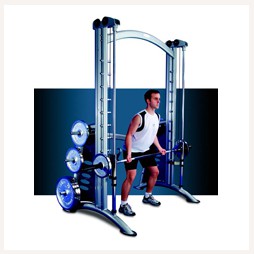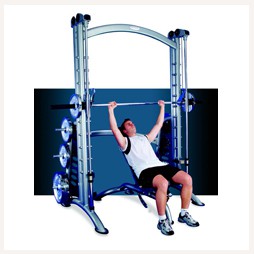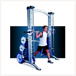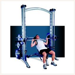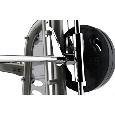 Универсальный тренажер - машина Смита - предназначен для коммерческого использования. Плавный и тихий ход обеспечен игольчатыми подшипниками, которые использованы в направляющих.