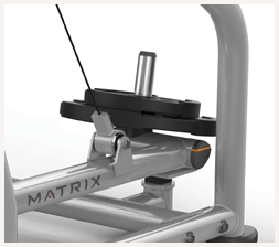 Рама тренажера MG-405 серии Magnum бренда Matrix оснащена двумя встроенными штырями для хранения дополнительных дисков.
