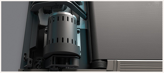 • Плавность и естественность хода бегового полотна обеспечивается высокопроизводительным двигателем переменного тока мощностью 5,0 л.с. с приводной системой Dynamic Response Drive.  Эта система точно регулирует отдачу, анализируя характер шага, за счет чего обеспечивается максимальный комфорт, стабильность и естественность тренировки.