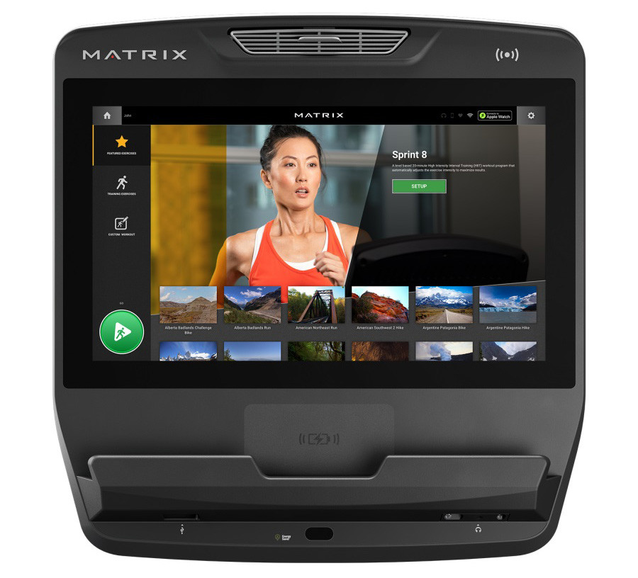 • Wi-Fi. Совместимость со стандартными сетями Wi-Fi обеспечивает возможность выбора удобного подключения, автоматического и бесплатного обновления программного обеспечения. Благодаря этому посетители фитнес-клуба могут отслеживать свои тренировки, а персонал заведения осуществлять контроль за состоянием оборудования. С помощью Wi-Fi обеспечивается возможность получения доступа к цифровой среде Matrix Connected Solutions, которая включает такие сетевые решения, как Personal Trainer Portal, Workout Tracking Network  и Asset Management.