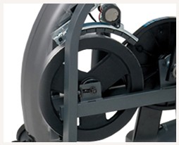 Механическую часть этих велоэргометров характеризуют плавный и тихий ход во всех диапазонах нагрузки, что достигается использованием качественных комплектующих, лучших в отрасли. Благодаря бесшумной трансмиссии QuietGlide™, снабженной беcщеточным JID™ генератором, а также высококачественным шведским подшипникам SKF и восьмижильному поликлиновому ремню создается абсолютно мягкий ход, характеризующийся по всему циклу вращения равномерной нагрузкой.